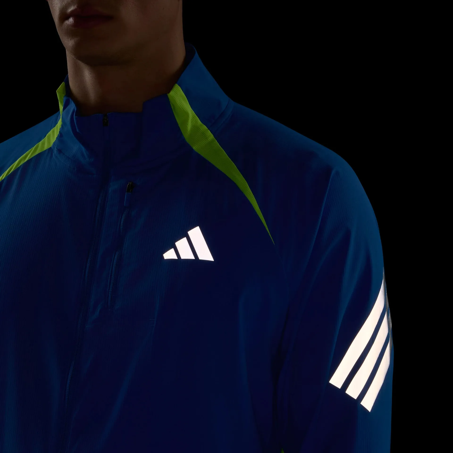 The jacket features a reflective performance logo and slanted 3-Stripes branding, so you stand out with adidas' iconic touch. Its mesh inserts offer breathability, helping to keep you cool and comfortable during your runs. The bungee cord at the hem allows for easy adjustability, for a customised fit.