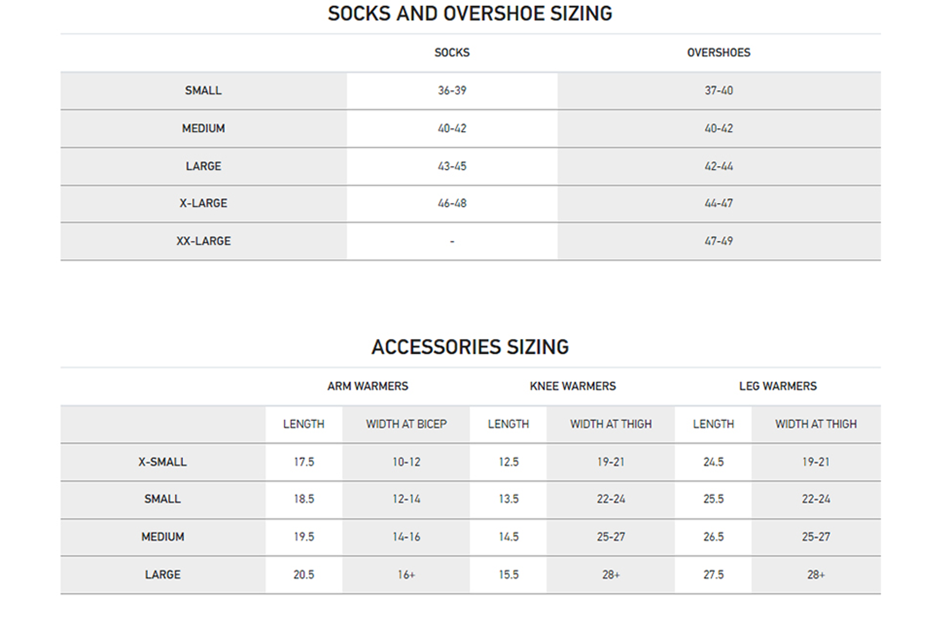 Sizing Information