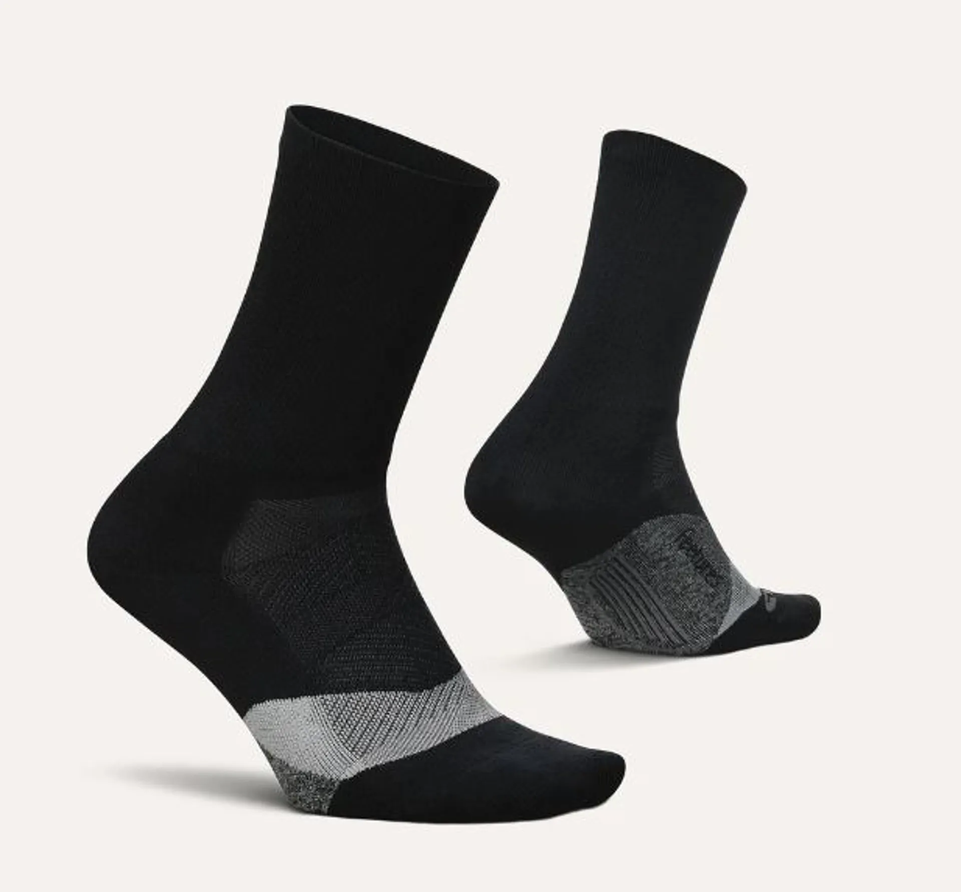 Feetures Mini Crew socks are a high-performance athletic sock designed for runners and other athletes. These socks feature a mini crew cut that sits just above the ankle, making them a great option for runners who want a slightly higher cut sock without the added bulk of a full crew sock.