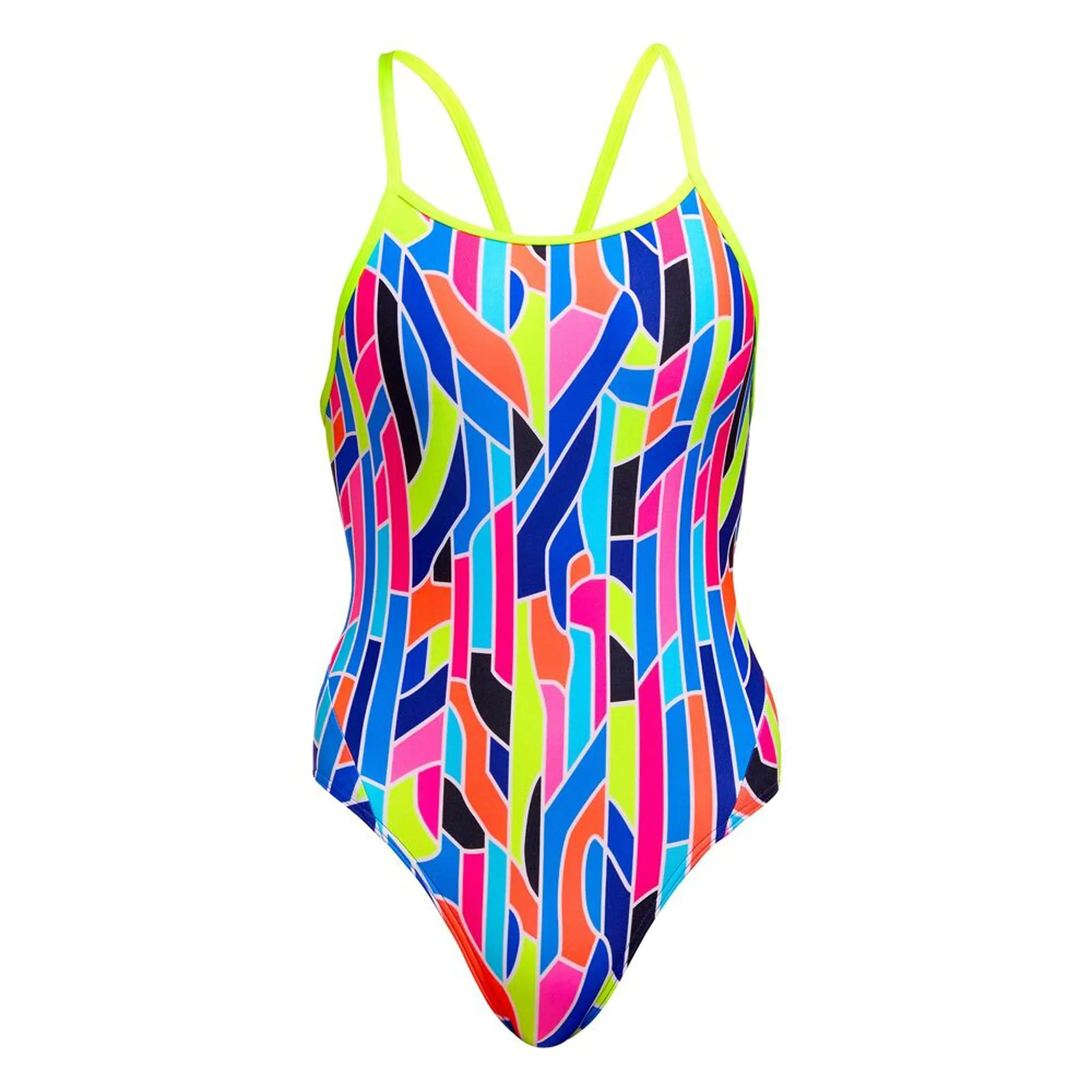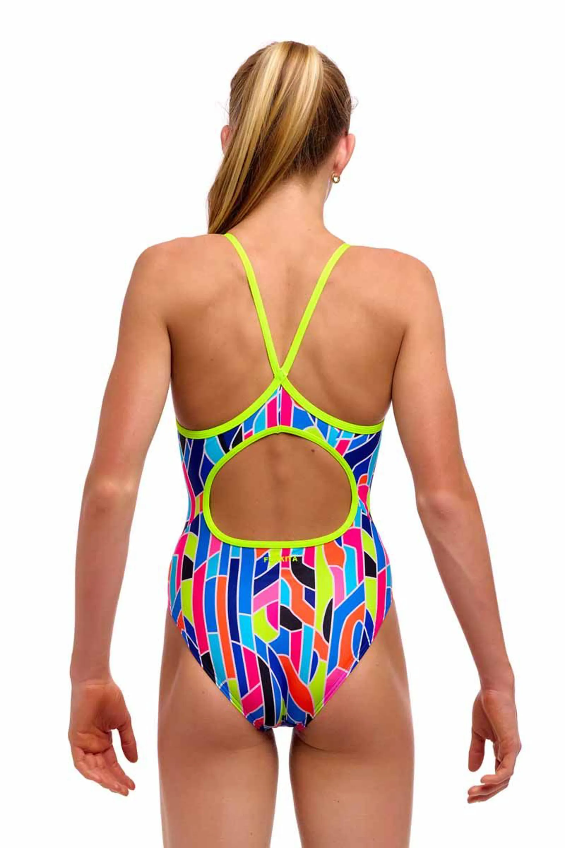 Our most popular one piece with fabric panels across the back for a secure fit and comfy single bind shoulder straps. C-INFINITY is 100% chlorine resistant.