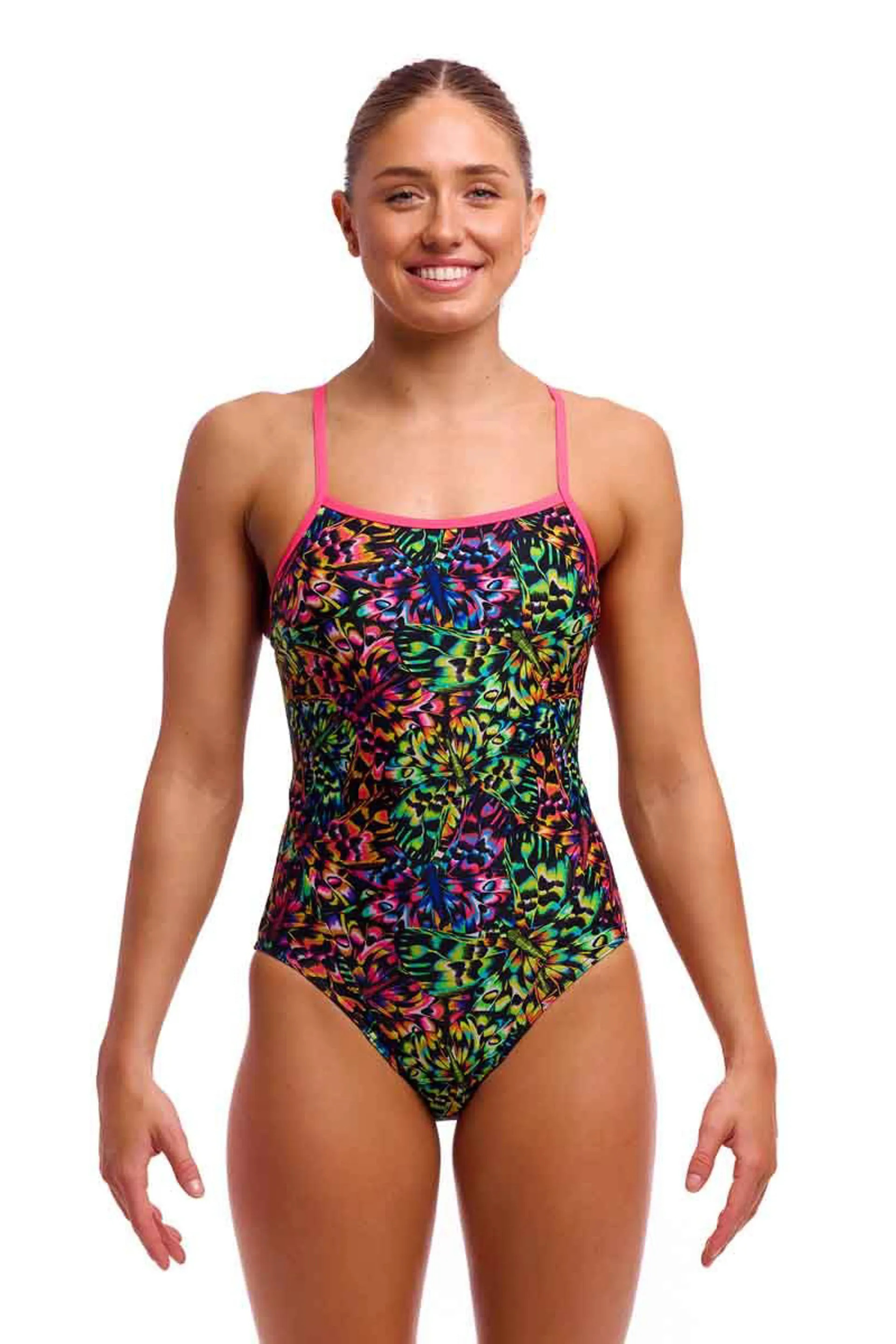 My single bind finish will flatter your sporty shape and has been designed to sit comfortably on your shoulders away from your important working parts when you pull through the water. I’ve got a moderate leg height and rear coverage so you won’t be picking around to find me after a few tumble turns.