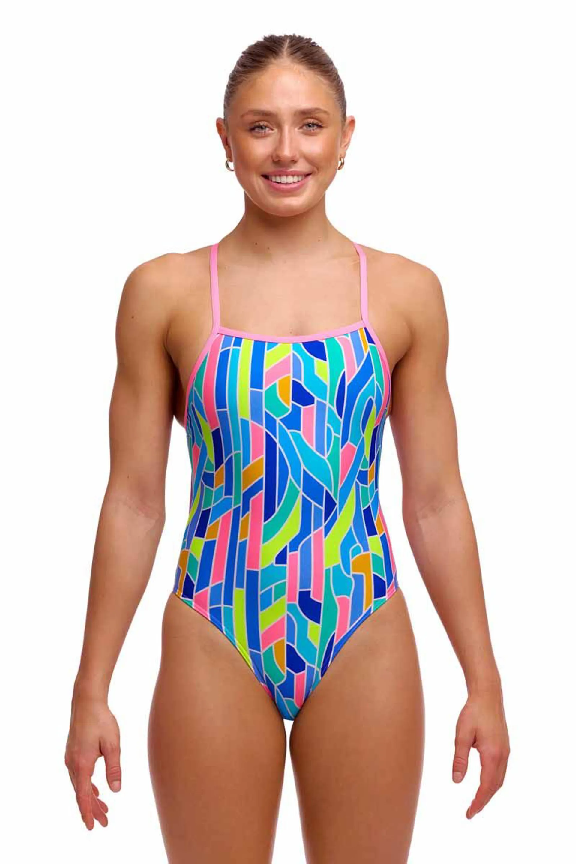 Tie me up, tie me tight, tie me anyway you like! My single bind straps can be tied at the back to give you the perfect fit for your next session. If you’re long and tall tie me loose for extra length in your shoulder straps, or if you’re short and sweet tie me tighter to pull me in more. I’ve got a higher leg and bum than my Diamond Back and Single Strap One Piece sisters but will still keep you covered throughout your session. With a moderately high cut leg it’s the perfect style to strap in for a hard session in the pool or relax when you’re poolside. Made from our exclusive C-Infinity fabric, a 100% Italian polyester that is a colourful breakthrough in chlorine resistant fabric technology! The superior choice for swimmers, C-Infinity has exceptional strength and can retain its durability far beyond other elastane swimwear fabrics. Ideal for frequent pool use for recreational and performance-based swimming.