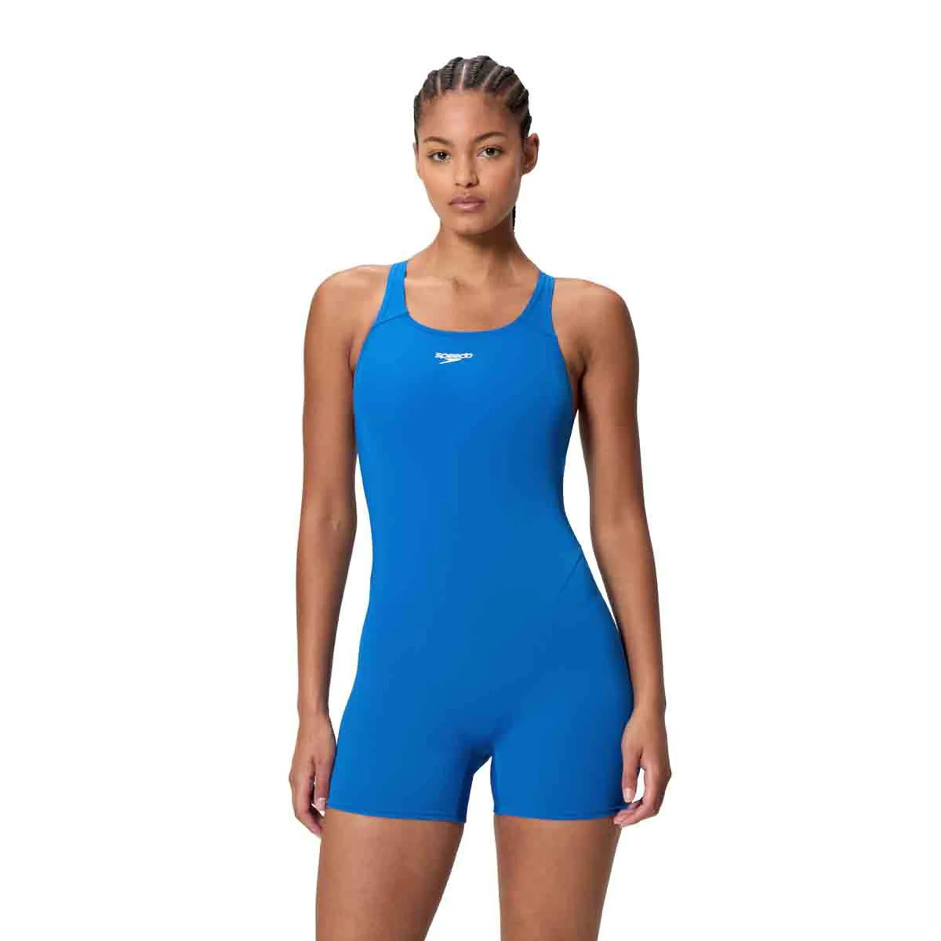 Designed for active swims, our Endurance+ Legsuit is a Speedo Classic. Built for comfort and durability using Endurance+ fabric, it resists chlorine and pilling for lasting performance. Reliable and comfy, it offers extra leg coverage and includes a comfort underbust elastic for light bust support. The racerback design allows maximum shoulder movement and flexibility. Body made of 53% polyester, 47% PBT.