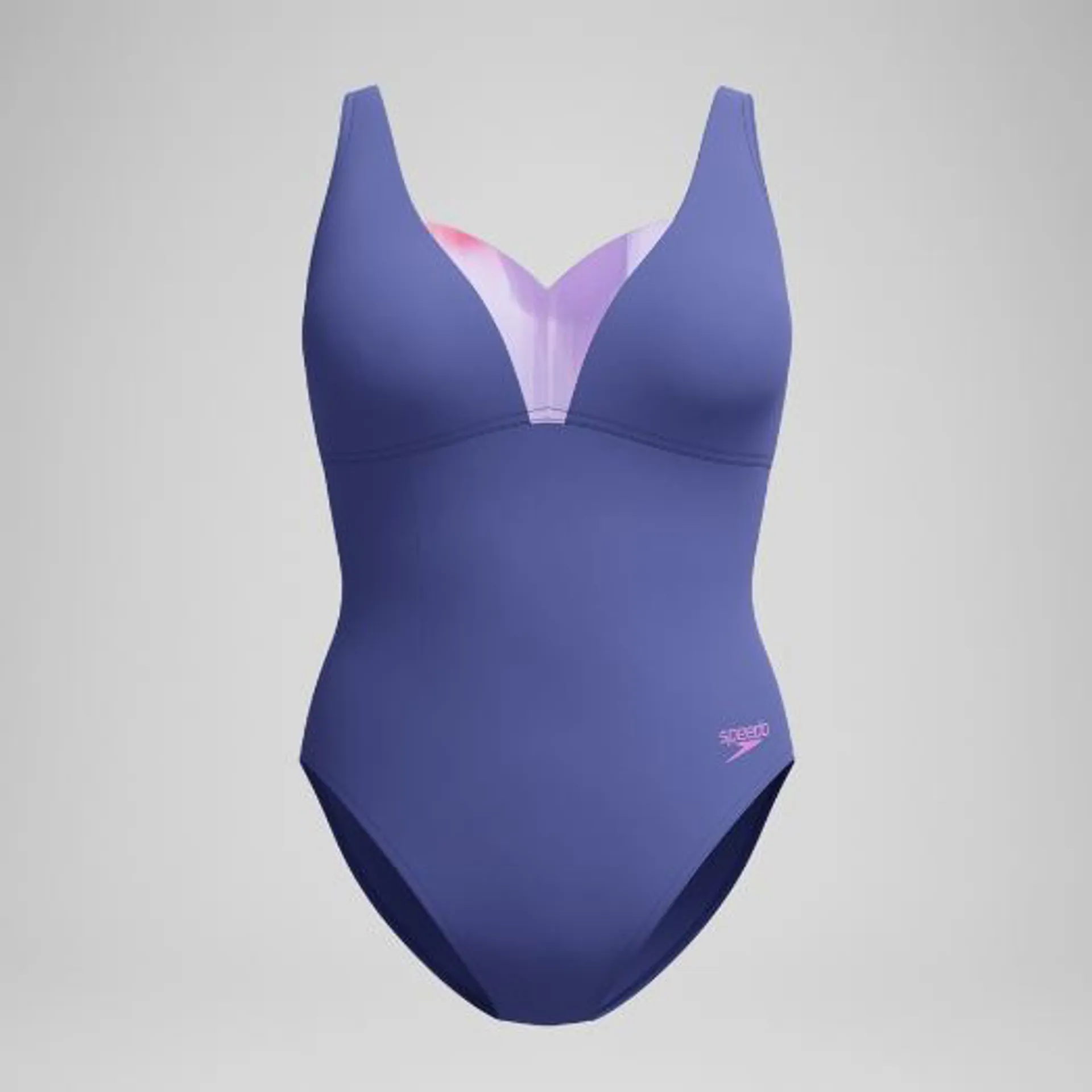 Speedo Women's Shaping Printed Opus Gem D+ 1 Piece Navy/Pink Indigo Glow