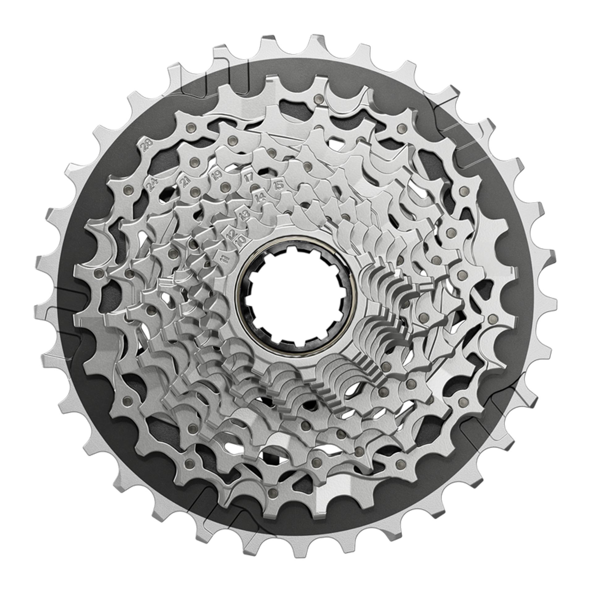 • Cog sizes: 10-28T: 10,11,12,13,14,15,16,17,19,21,24,28; 10-30T: 10,11,12,13,14,15,17,19,21,24,27,30; 10-33T: 10,11,12,13,14,15,17,19,21,24,28,33; 10-36T: 10,11,12,13,15,17,19,21,24,28,32,36