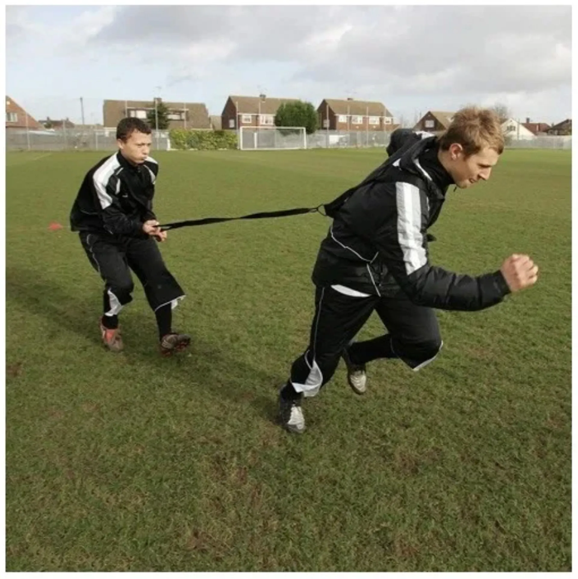 Introducing our Power Speed Resister, the ultimate cost-effective training tool for building explosive speed and strength. This innovative device features a webbing harness with a leash that allows one athlete to resist and challenge the speed and power of another athlete. Whether you're looking to improve acceleration, stride length, or overall speed, our Power Speed Resister is the perfect solution for intense and effective training sessions. Take your performance to new heights with this essential training accessory.