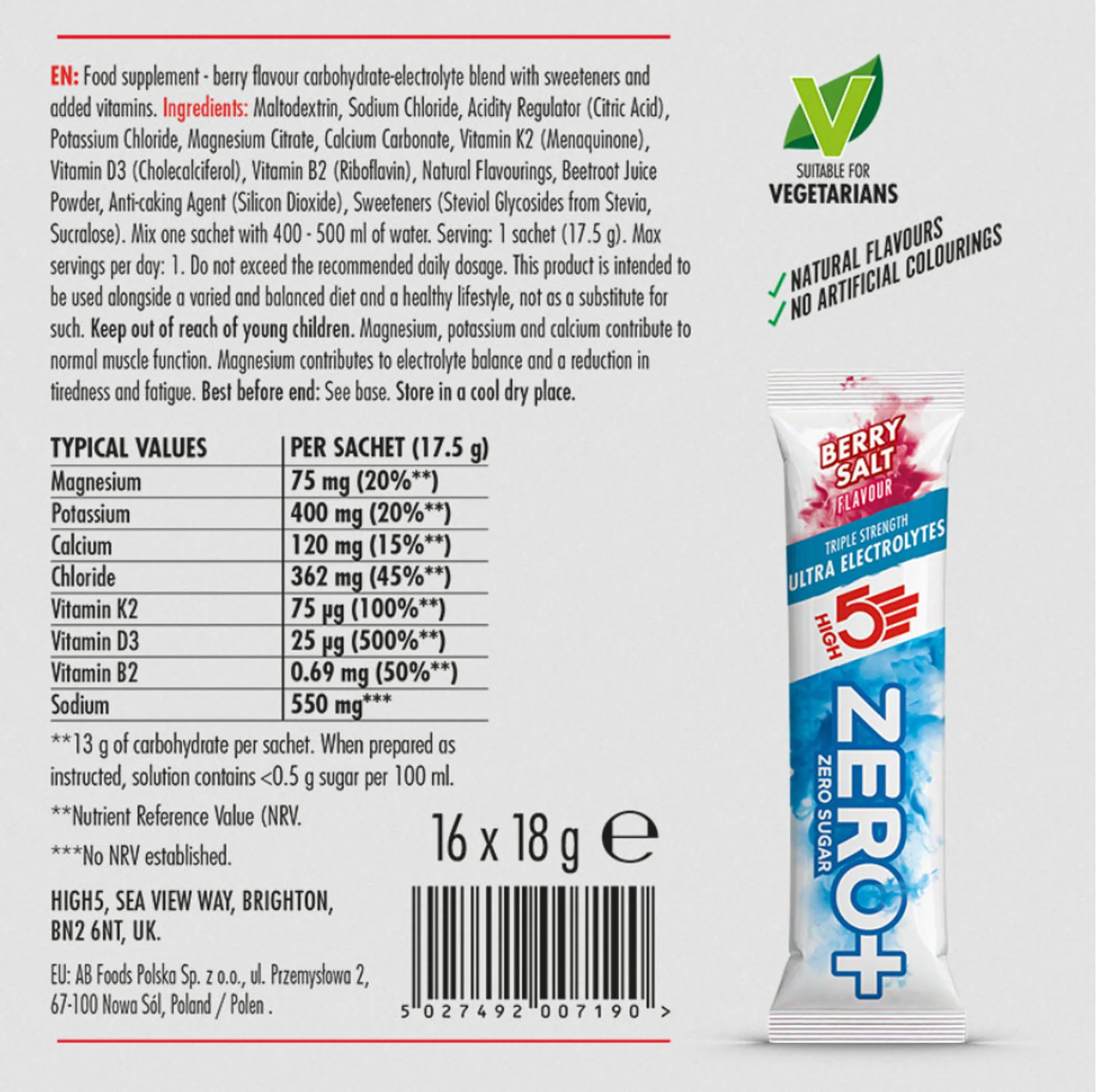 High 5 Zero+ Ultra Electrolytes Berry Salt 18g